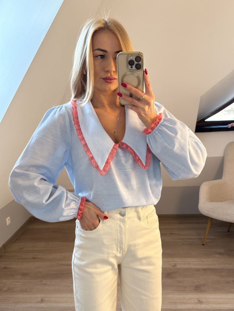 Bluzka koszulowa z kołnierzem ELZA (błękitna)
