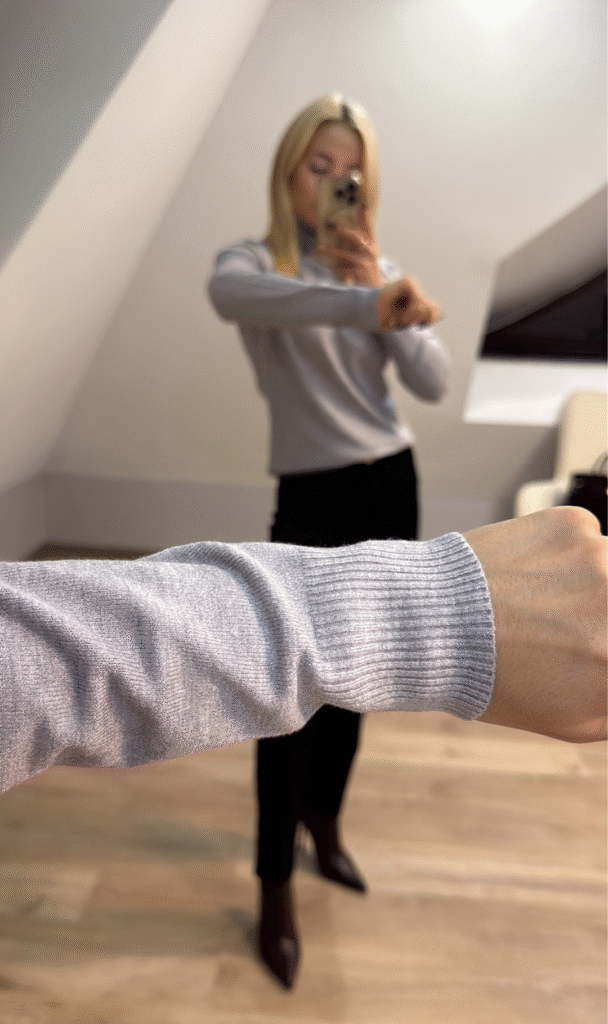 Wykonany z wyjątkowo miękkiego materiału , który idealnie dopasowuje się do sylwetki. Doskonały do noszenia solo lub jako baza pod marynarkę czy ramoneskę . Ściągacz na rękawie oraz na dole golfy.
