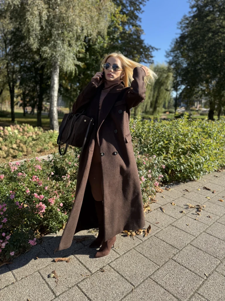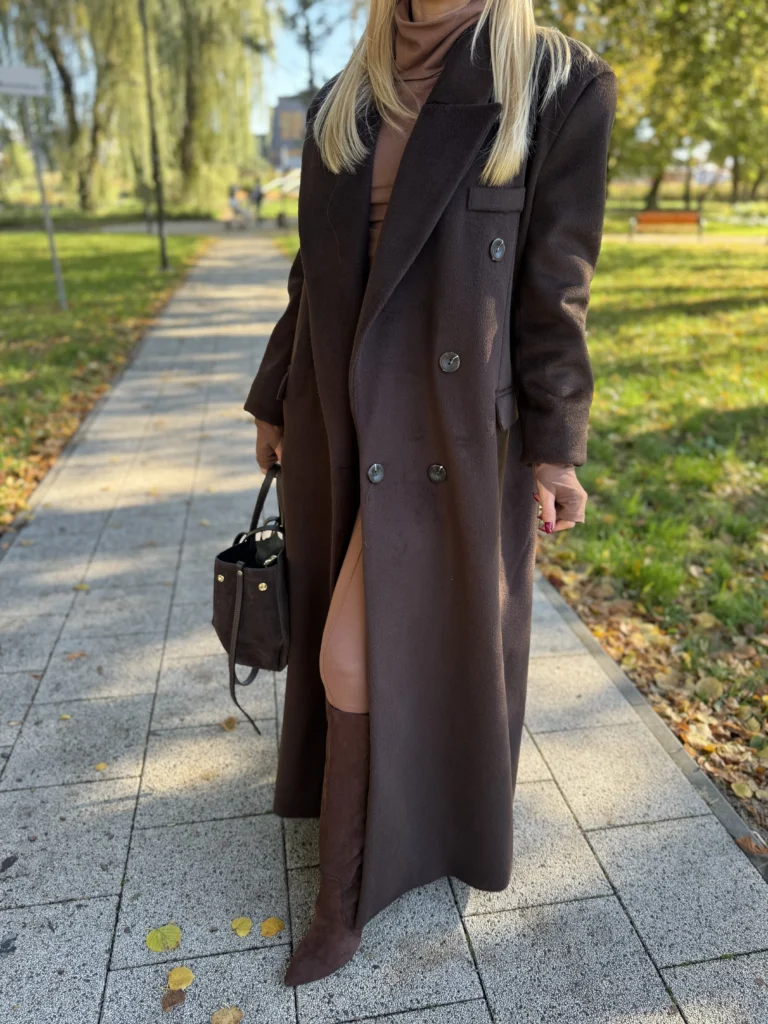 Stylowy , a zarazem elegancki dwurzędowy płaszcz damski zapinany na guziki w stylu retro. Wykonany z wysokiej jakości materiału z wełną w składzie , zapewnia ciepło , wygodę oraz komfort podczas noszenia . Prosty krój z mocno zaznaczoną linią ramion podkreśla sylwetkę i dodaje charakteru. Idealny wybór na chłodne jesienne i zimowe dni .